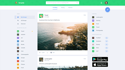 Upon creating an account, users are able to follow public groups or create their own. Posts from these groups then appear in their main feed, which constantly changes throughout the day depending on what’s trending at that moment.