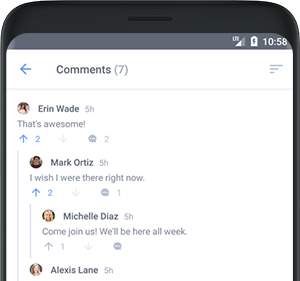 Users are able to participate in groups by creating new posts or upvoting, downvoting, and commenting on posts made by other users. Comments are intuitively laid out through a nesting system, where replies are nested under their parent comment. This makes it easy to read comments and also gives the user the ability to expand and collapse individual comments.