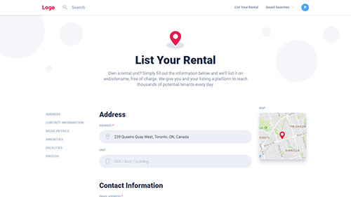 Landlords are able to add their apartment to the website through a simple form, which allows them to fill in important information about the apartment, such as the address, a description, and all basic information listed above. Landlords are also able to upload and reorder photos of their apartments, as well as the ability to select a cover photo that appears as the thumbnail.