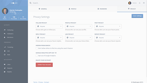 Designed and developed a social media platform that valued user privacy over all else. Combining features of Twitter and Facebook, Dropon was alternative to those who cared about their privacy.