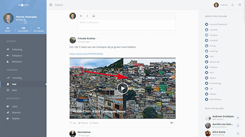 Posts are assigned a “trending score”, which is determined by the post’s age and activity. Newer posts with high levels of activity will appear higher up on the user’s feed than an old post with diminishing levels of activity.